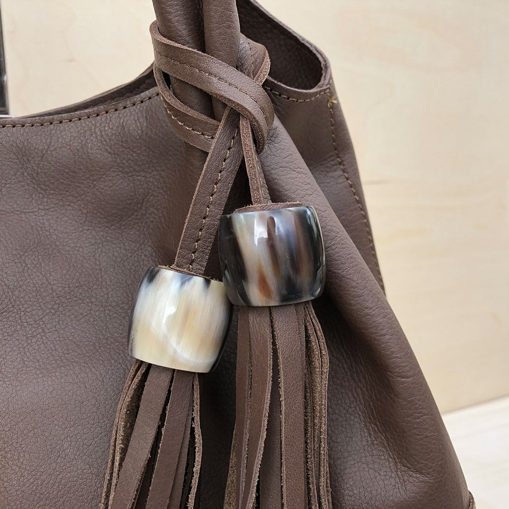 Es sind die kleinen Dinge, die das Leben besonders machen. Wir legen Wert auf einzigartige Details wie die handgefertigte Hornperlen an unserer Meghan Bag. Jede Perle ist ein einzigartig und macht Ihre Tasche zu Ihrer ganz persönlichen Tasche